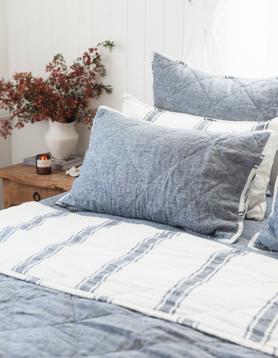 A sham is a quilted pillowcase. Linen quilted shams add the perfect finishing touch to your coastal sanctuary.